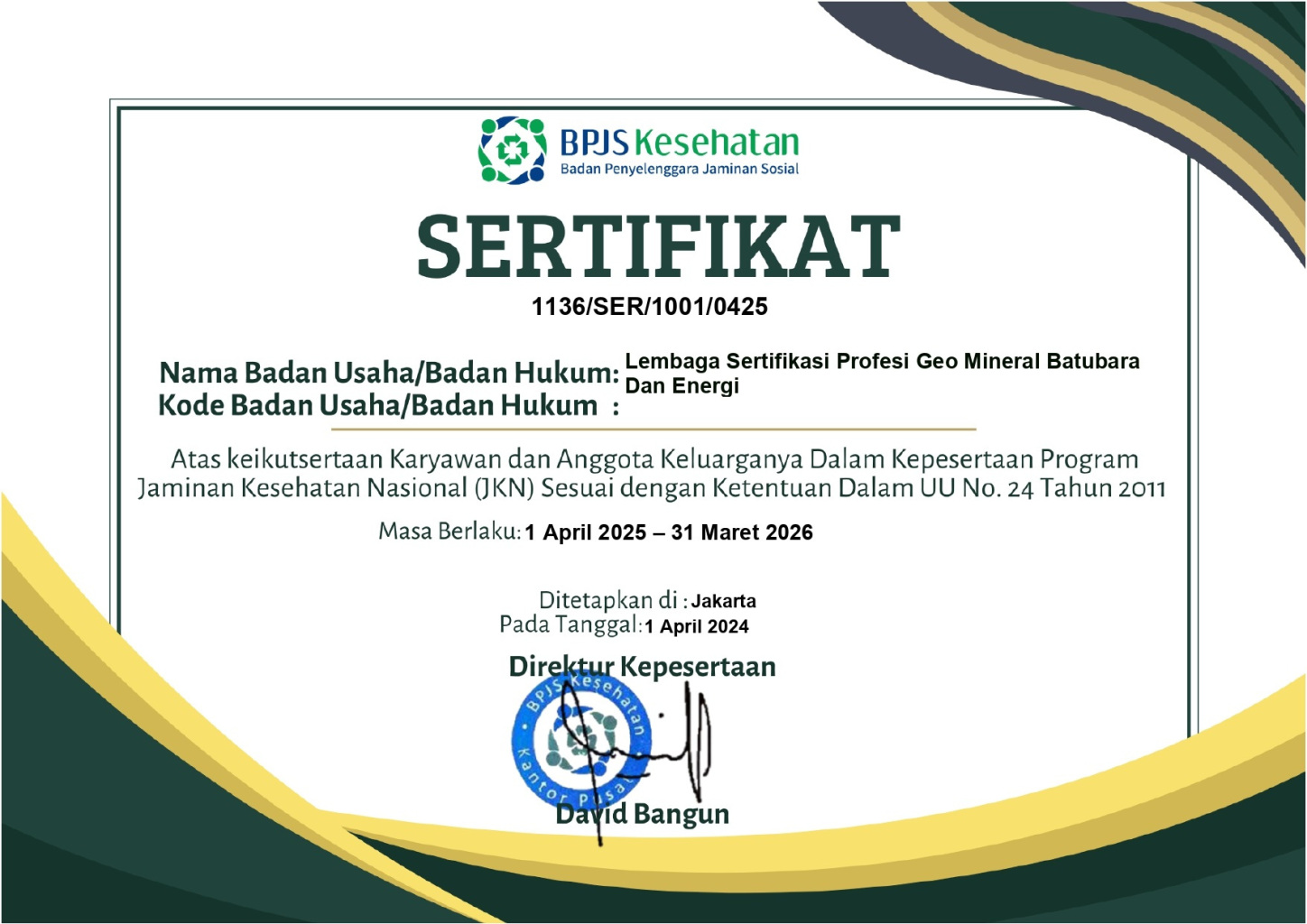 Lembaga Sertifikasi Profesi Geo Mineral Batubara dan Energi adalah lembaga sertifikasi terpercaya yang telah mendapatkan lisensi resmi dari Badan Nasional Sertifikasi Profesi (BNSP) dengan No.1375-ID. Didirikan pada 17 Oktober 2018, LSP GMBE hadir sebagai garda terdepan dalam memastikan kompetensi profesional di bidang geo-mineral, batubara, dan energi.